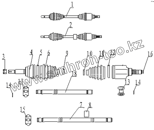 Каталог запасных частей к технике: Geely FC. DRIVE SHAFT ASSY.
