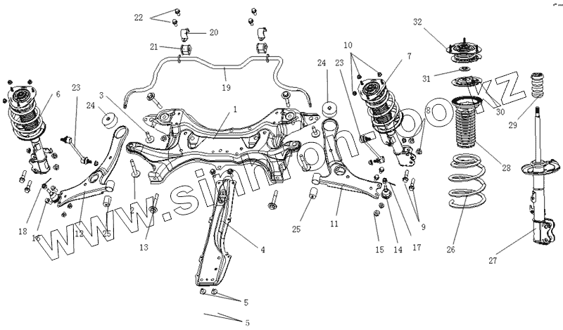 Каталог запасных частей к технике: Geely FC. FRONT SUSPENSION ASSY.