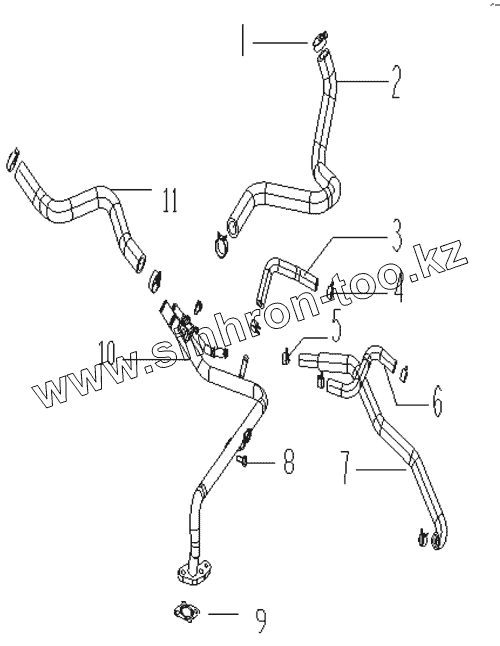 Каталог запасных частей к технике: Geely FC. HEATER INLET & OUTLET PIPE COMPONENTS