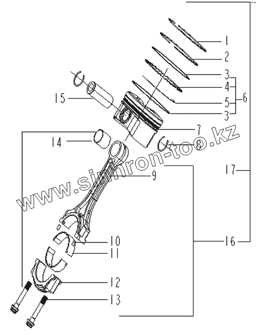 Каталог запасных частей к технике: Geely FC. PISTON CONNECTING ROD COMPONENTS
