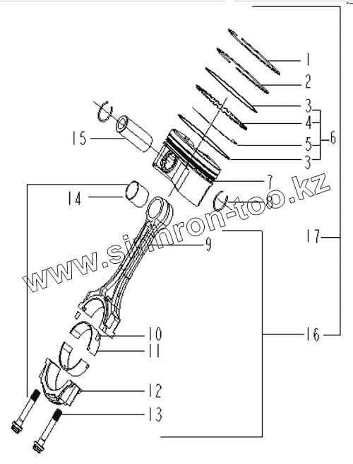 Каталог запасных частей к технике: Geely FC. PISTON CONNECTING ROD COMPONENTS