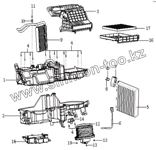 Каталог запасных частей к технике: Geely MK. A/C HEADUNIT ASSY.
