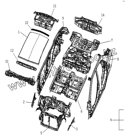 Каталог запасных частей к технике: Geely MK. BODY ASSY.