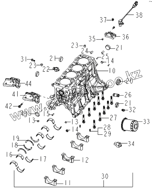 Каталог запасных частей к технике: Geely MK. CYLINDER BLOCK COMPONENTS