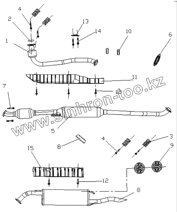 Каталог запасных частей к технике: Geely MK. EXHAUST SYSTEM (1.5L)