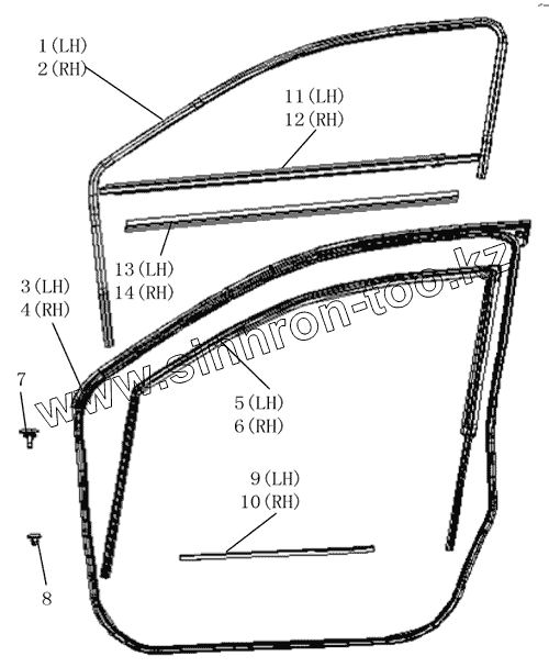 Каталог запасных частей к технике: Geely MK. FRONT DOOR WEATHERSTRIP