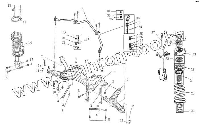 Каталог запасных частей к технике: Geely MK. FRONT SUSPENSION