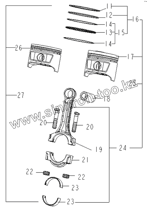 Каталог запасных частей к технике: Geely MK. PISTON CONNECTING ROD COMPONETS