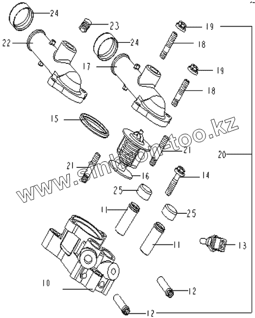 Каталог запасных частей к технике: Geely MK. THERMOSTAT ASSY.