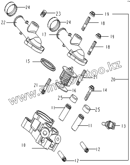 Каталог запасных частей к технике: Geely MK. THERMOSTAT ASSY.