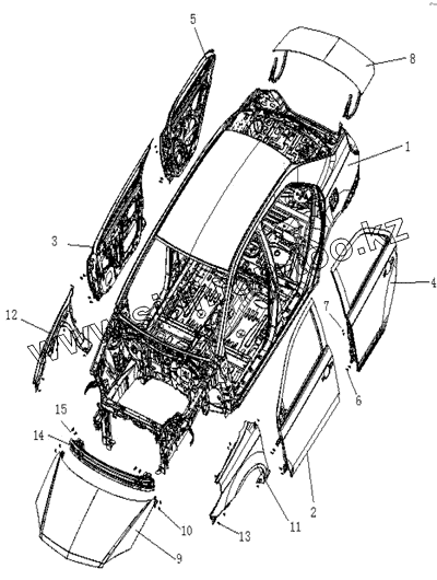 Каталог запасных частей к технике: Geely MK. WHITE BODY ASSY.