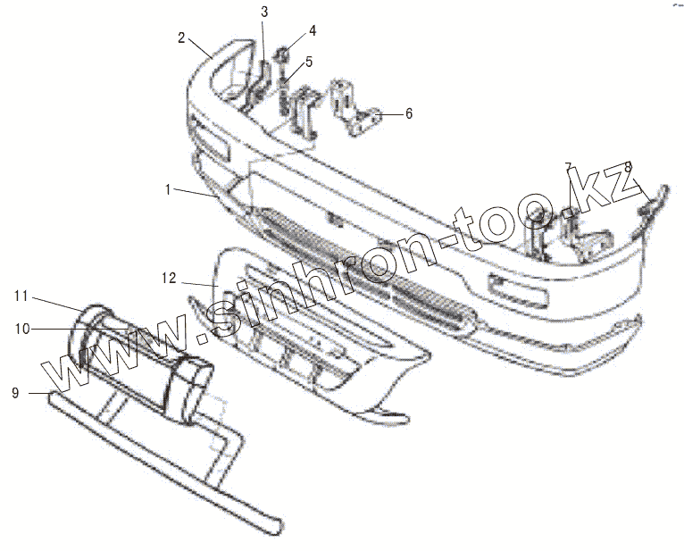 Каталог запасных частей к технике: Great Wall GW-Deer. FRONT BUMPER WITH BRACKET ASSEMBLY