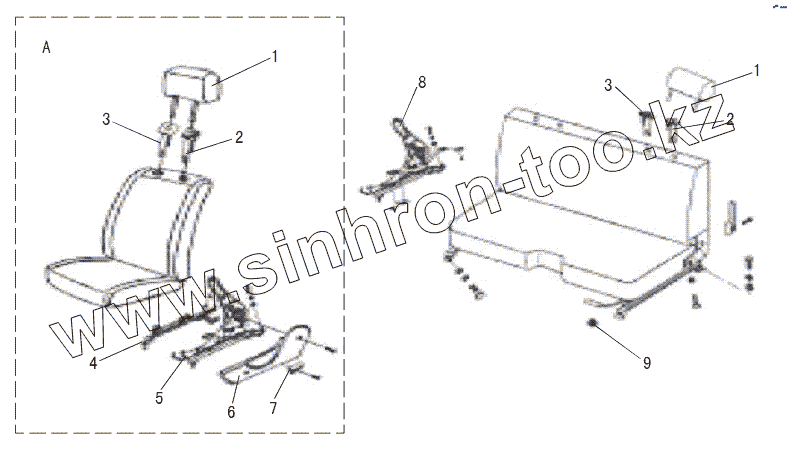 Каталог запасных частей к технике: Great Wall GW-Deer. FRONT ROW SEATS ASSEMBLY