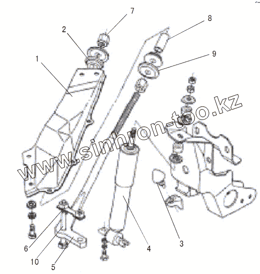 Каталог запасных частей к технике: Great Wall GW-Deer. FRONT SUSPENSION RIGHT BRACKET AND STRUT