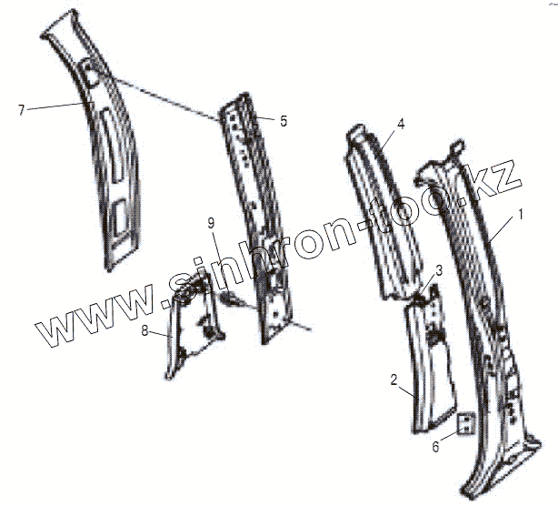 Каталог запасных частей к технике: Great Wall GW-Deer. LEFT B PILLAR ASSEMBLY