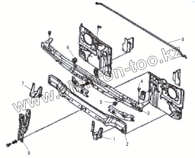 Каталог запасных частей к технике: Great Wall GW-Deer. RADIATOR BRACKET ASSEMBLY (1)