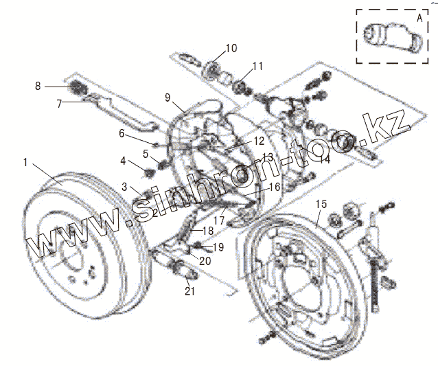 Каталог запасных частей к технике: Great Wall GW-Deer. RIGHT REAR BRAKE ASSEMBLY (1)