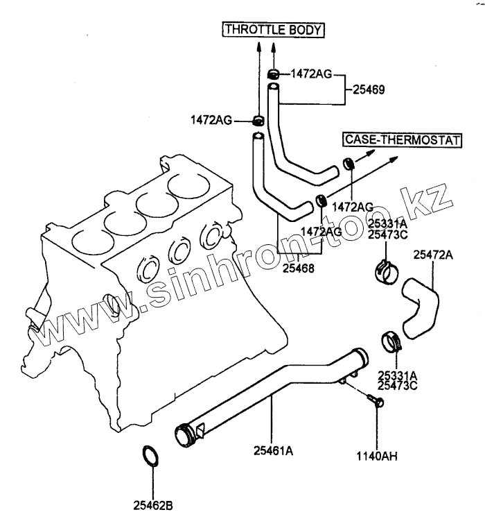 Каталог запасных частей к технике: Hyundai Accent. COOLANT HOSE & PIPE (DOHC)