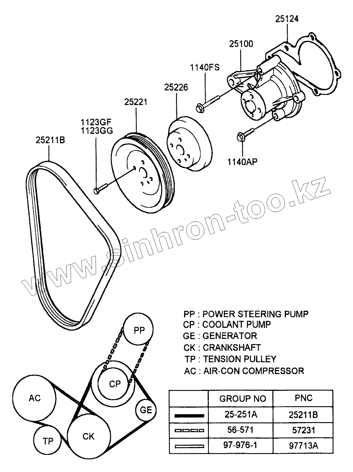 Каталог запасных частей к технике: Hyundai Accent. COOLANT PUMP (DOHC)
