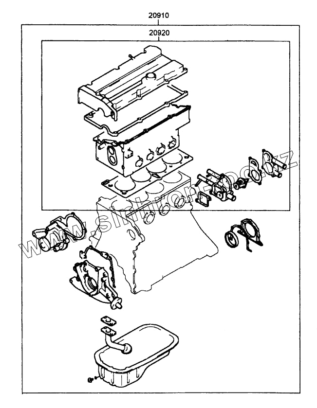 Каталог запасных частей к технике: Hyundai Accent. ENGINE GASKET KIT (CARB, SOHC)
