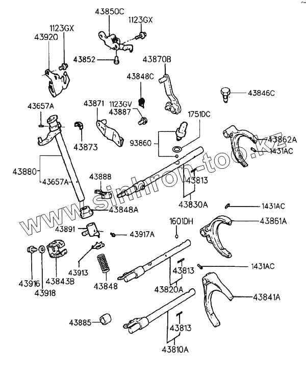 Каталог запасных частей к технике: Hyundai Accent. GEAR SHIFT CONTROL (MTA)