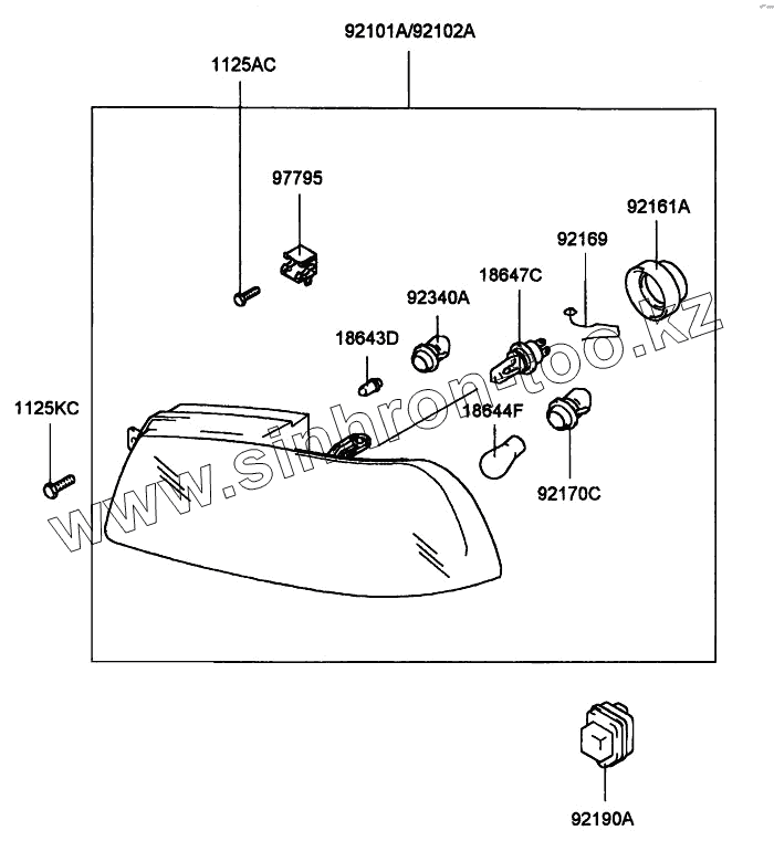 Каталог запасных частей к технике: Hyundai Accent. HEADLAMP