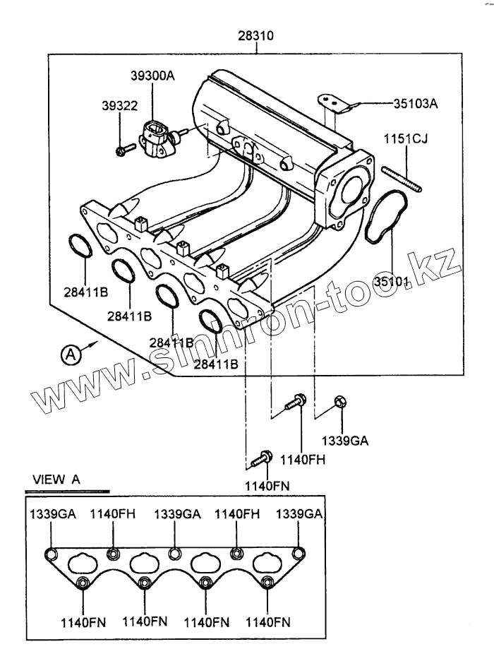 Каталог запасных частей к технике: Hyundai Accent. INTAKE MANIFOLD (MFI, SOHC)