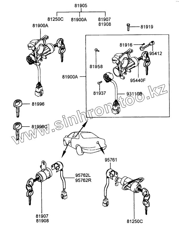 Каталог запасных частей к технике: Hyundai Accent. KEY & CYLINDER SET
