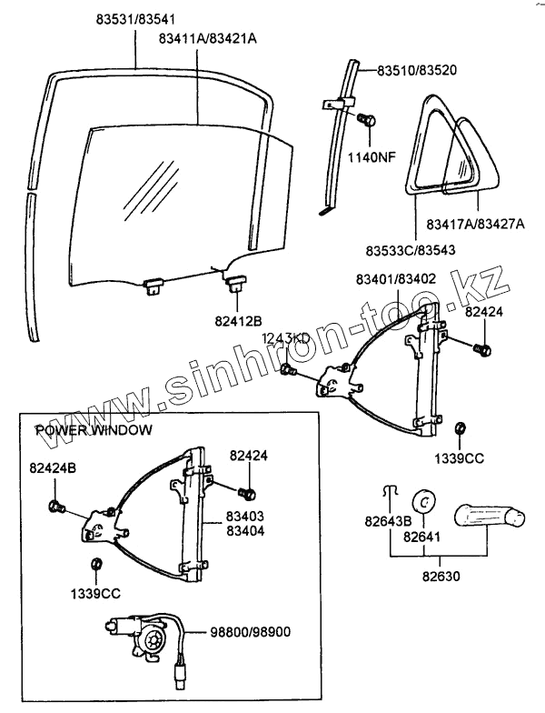 Каталог запасных частей к технике: Hyundai Accent. REAR DOOR WINDOW REG & GLASS
