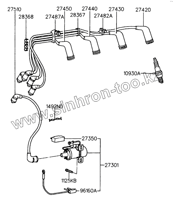 Каталог запасных частей к технике: Hyundai Accent. SPARK PLUG & CABLE (CARB)