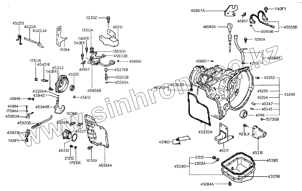 Каталог запасных частей к технике: Hyundai Accent. TRANSAXLE CASE (ATA)