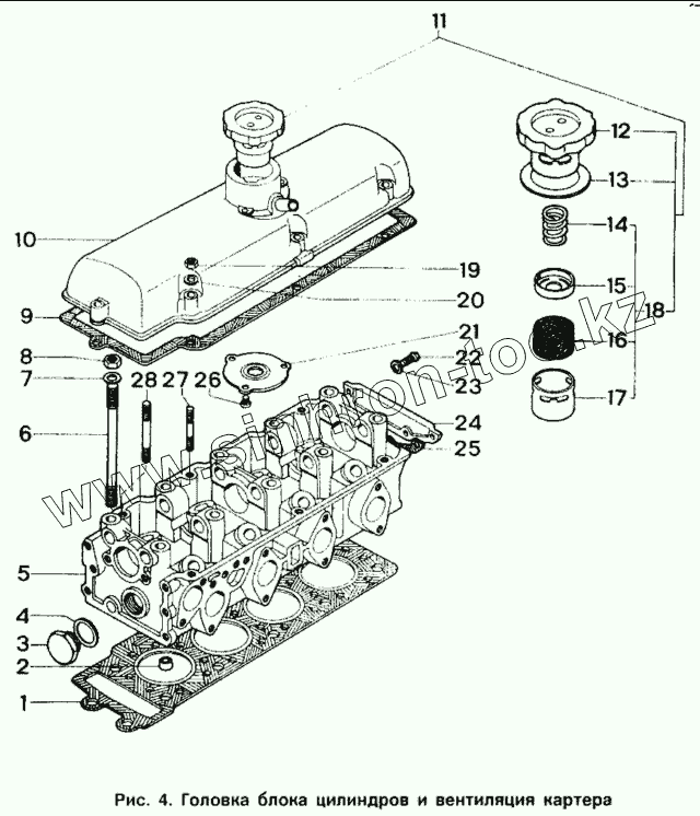 Каталог запасных частей к технике: ИЖ 2126. Головка блока цилиндров и вентиляция картера