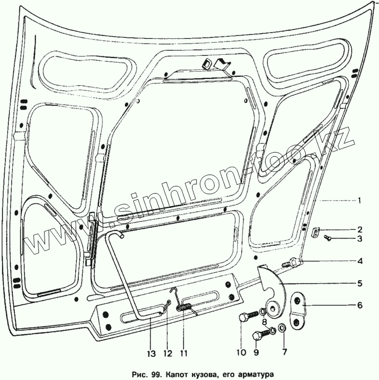 Каталог запасных частей к технике: ИЖ 2126. Капот кузова, его арматура