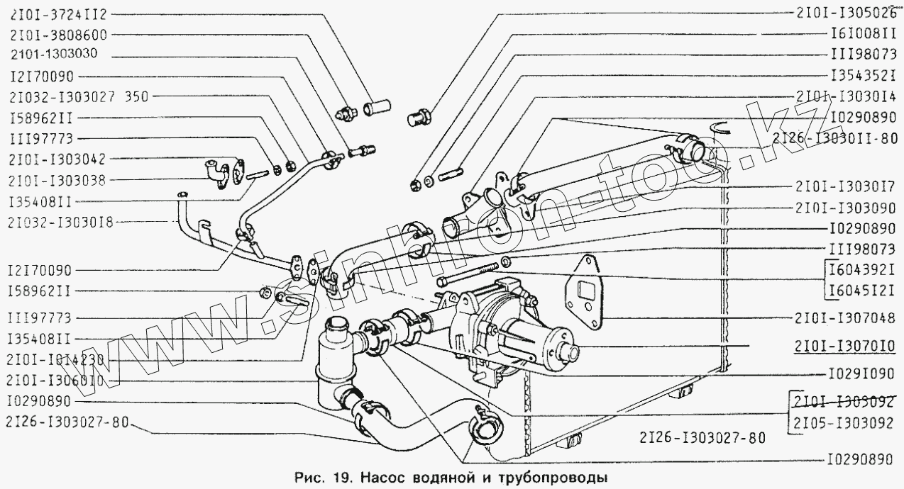 Каталог запасных частей к технике: ИЖ 2126. Насос водяной и трубопроводы