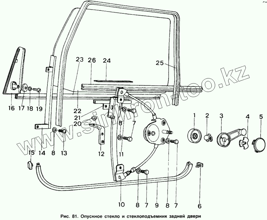 Каталог запасных частей к технике: ИЖ 2126. Опускное стекло и стеклоподъемник задней двери