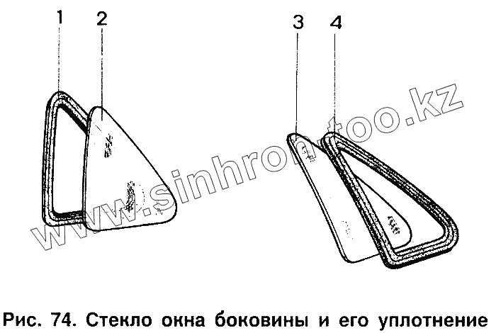 Стекло окна боковины и его уплотнение
