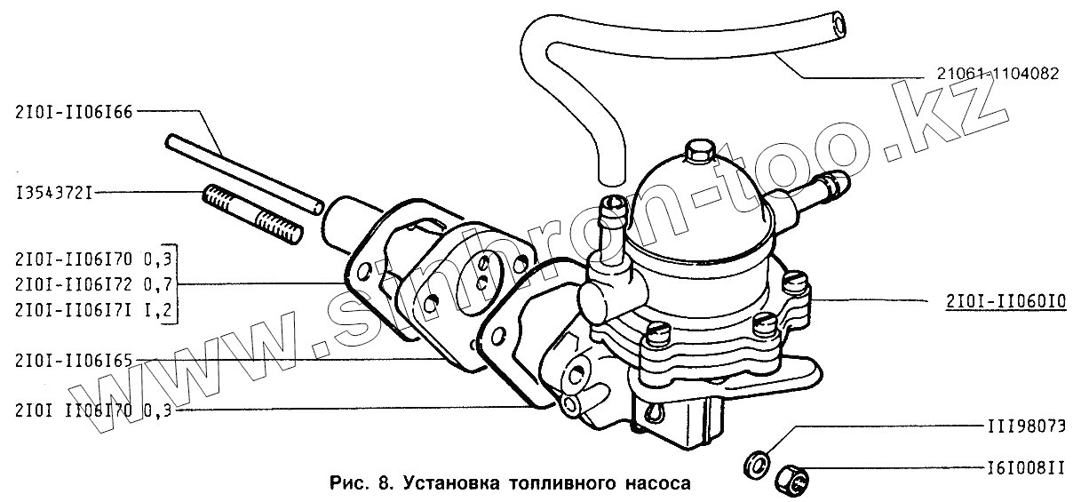 Каталог запасных частей к технике: ИЖ 2126. Установка топливного насоса