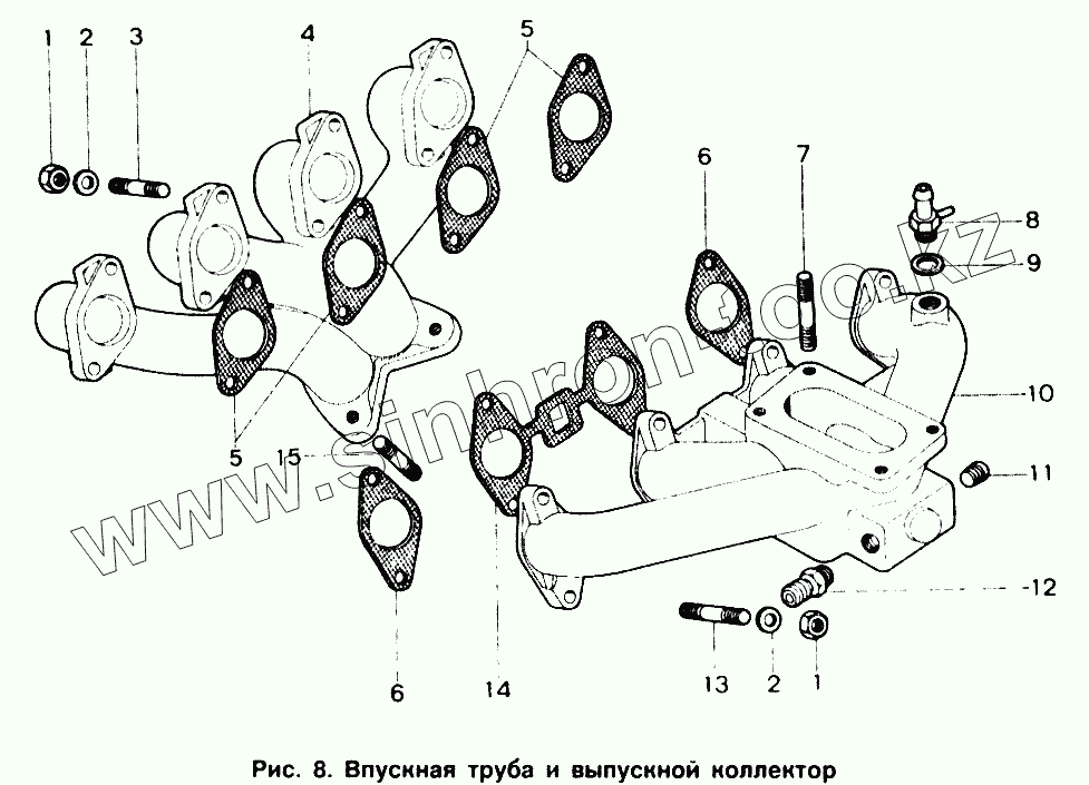 Каталог запасных частей к технике: ИЖ 2126. Впускная труба и выпускной коллектор