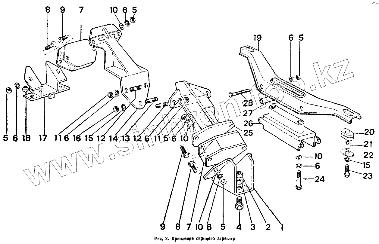 Каталог запасных частей к технике: ИЖ 2126. Крепление силового агрегата