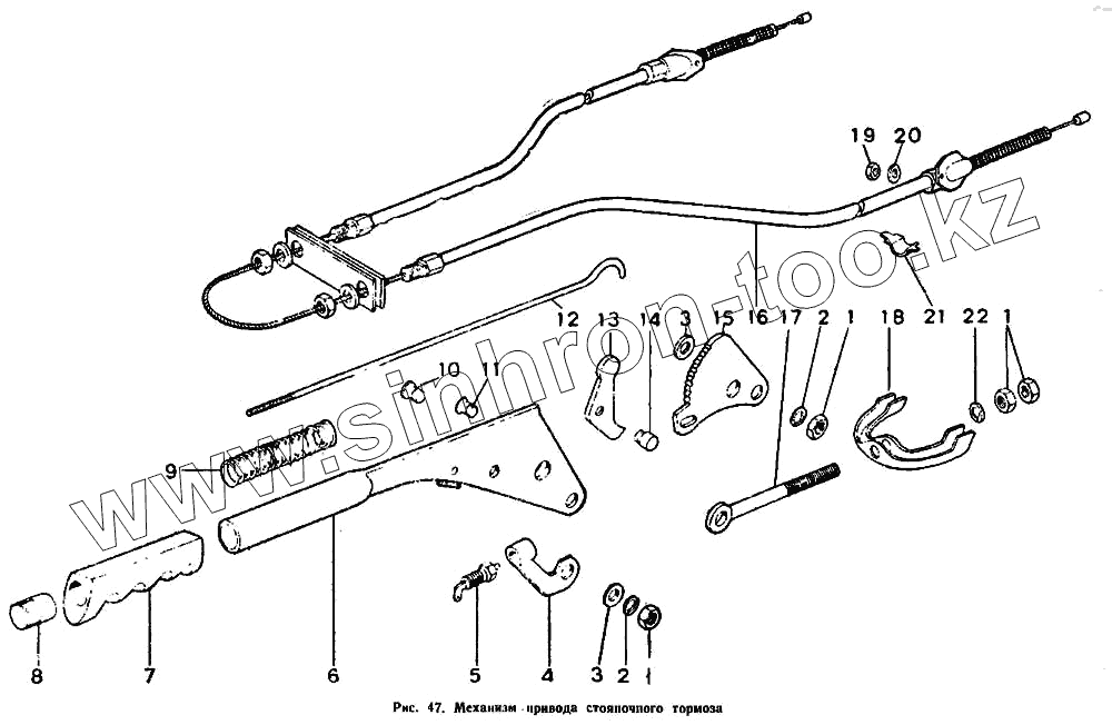Каталог запасных частей к технике: ИЖ 2126. Механизм привода стояночного тормоза