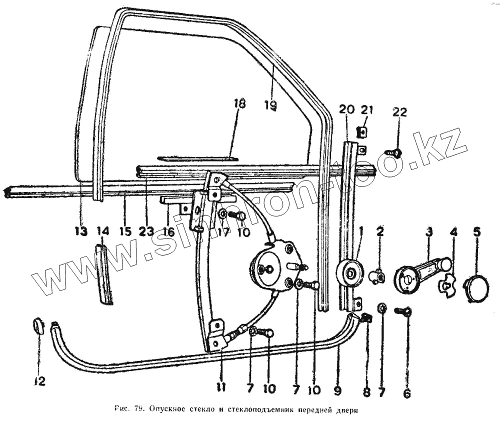 Каталог запасных частей к технике: ИЖ 2126. Опускное стекло и стеклоподъемник передний двери