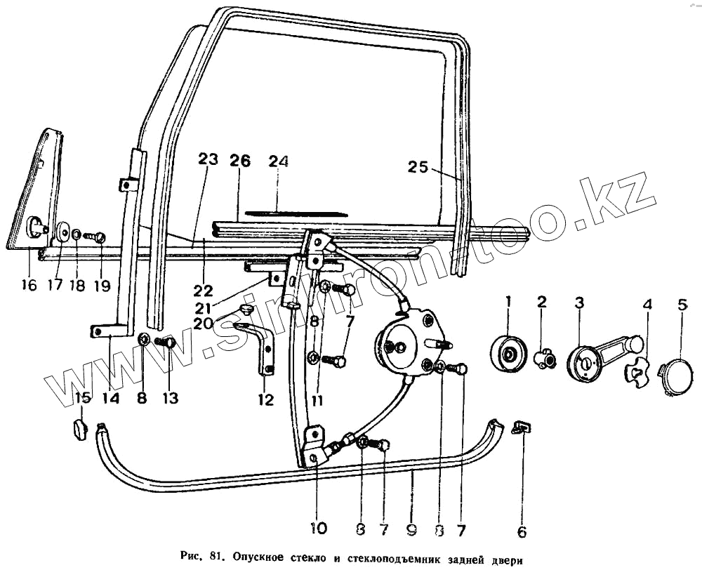 Каталог запасных частей к технике: ИЖ 2126. Опускное стекло и стеклоподъемник задней двери