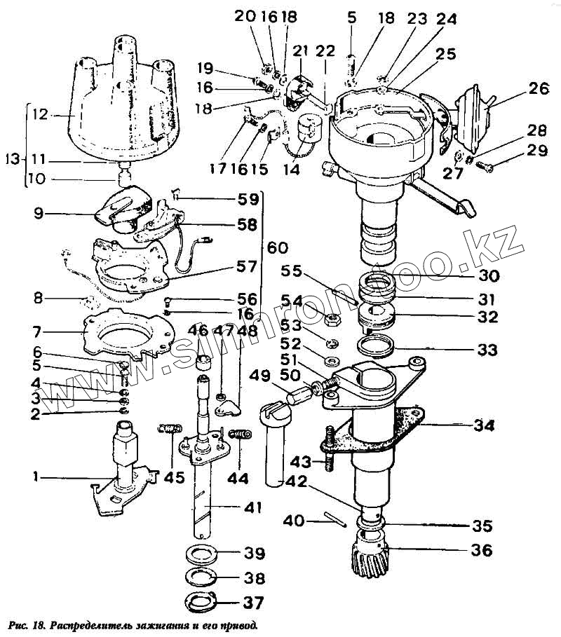 Каталог запасных частей к технике: ИЖ 2126. Распределитель зажигания и его привод
