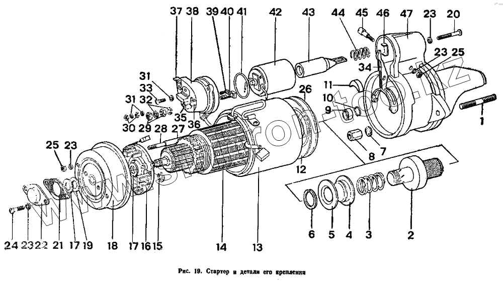 Каталог запасных частей к технике: ИЖ 2126. Стартер и детали его крепления