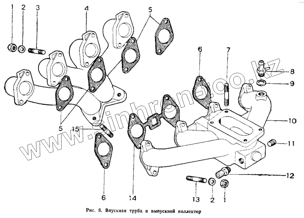 Каталог запасных частей к технике: ИЖ 2126. Впускная труба и выпускной коллектор