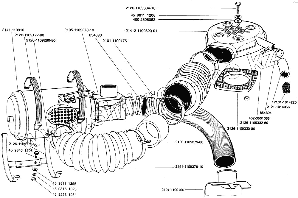Каталог запасных частей к технике: ИЖ 2126 с двигателем ВАЗ. Фильтр воздушный выносной