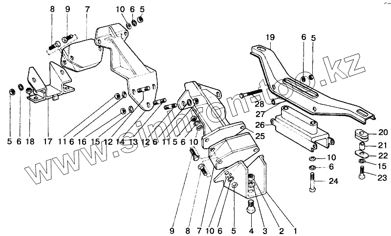 Каталог запасных частей к технике: ИЖ 2126 с двигателем ВАЗ. Крепление силового агрегата