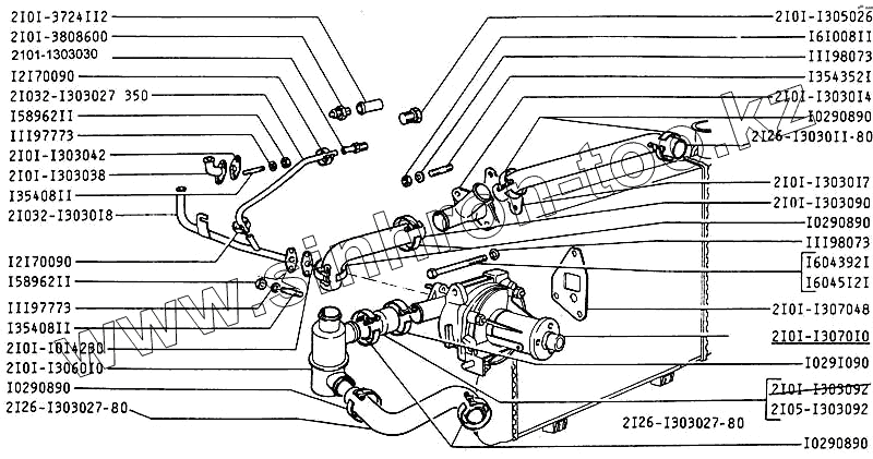 Каталог запасных частей к технике: ИЖ 2126 с двигателем ВАЗ. Насос водяной и трубопроводы