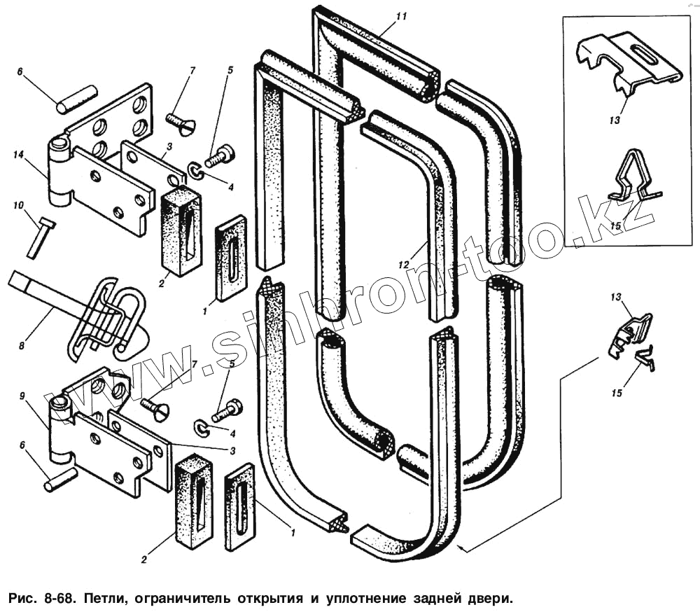 Каталог запасных частей к технике: ИЖ 2715. Петли ограничителя открытия и уплотнение задней двери