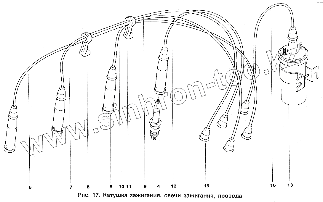 Каталог запасных частей к технике: ИЖ 2717. Катушка зажигания, свечи зажигания, провода